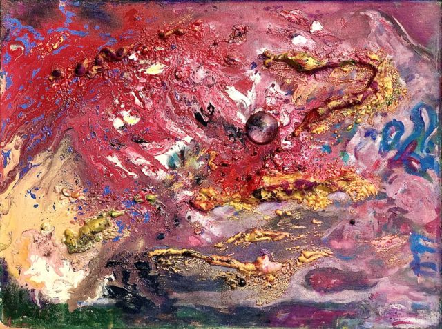 Working at the intersection of the microscopic and macroscopic, Cro-Ken considered himself a conduit for Nature’s expressivity, co-creating in concert with seasonal and elemental forces. Cro-Ken used chemical catalysts – what he called “Speed Elements” – to set his paintings in motion, and reveal the invisible push-pull forces of nature. These durational paint experiments were conducted in a variety of climates and atmospheres – in the snow, the rain, and the beating heat of the summer sun – in order to capture the wide range of nature’s manifestations through the seasons. Through this process, ordinary found objects were transformed into multidimensional landscapes of the universe. A true experimentalist, Cro-Ken allowed each painting to take on a life of its own, acting both as vessel and witness.