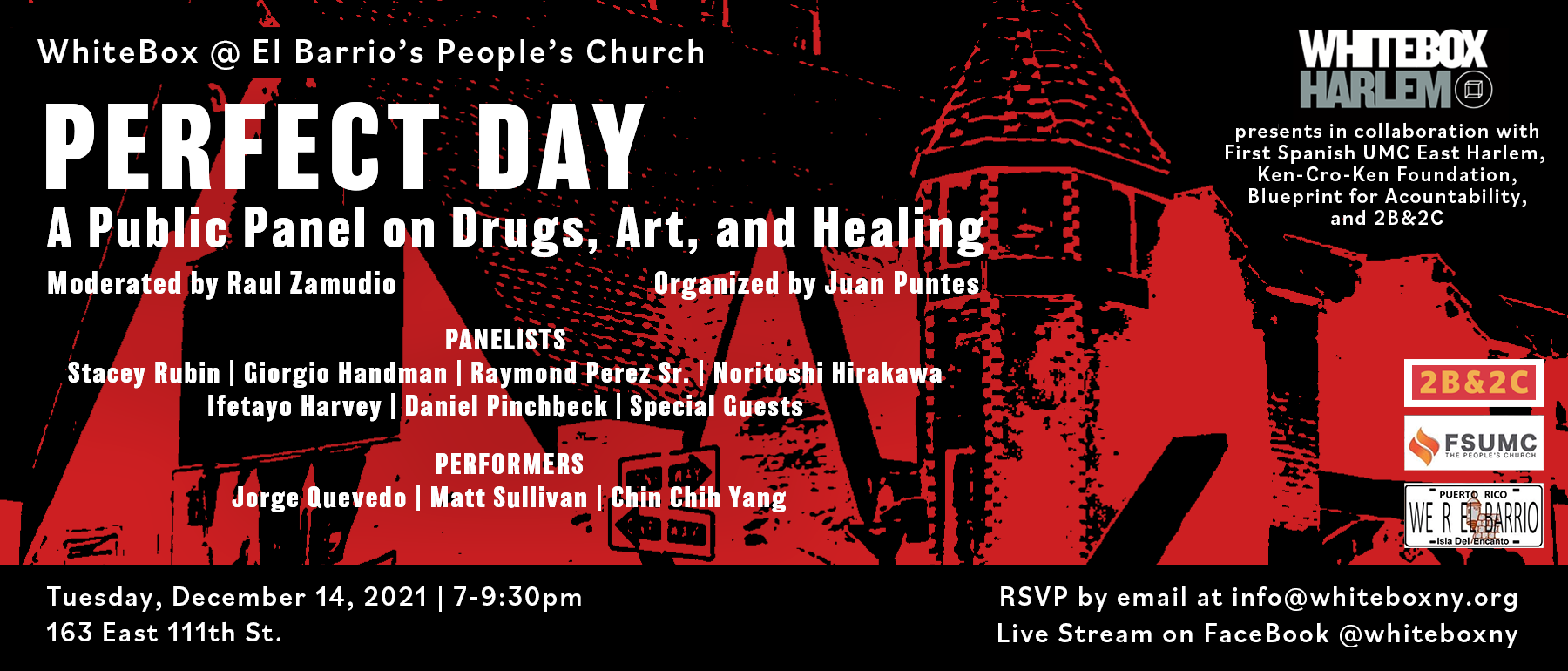 This panel discussion, presented in conjunction with the exhibition, PERFECT DAY: Drugs & Art, opens up a dialogue and debate around the show’s theme: the use and abuse of drugs, with emphasis on opioids and the destructive force in NYC minority communities.
