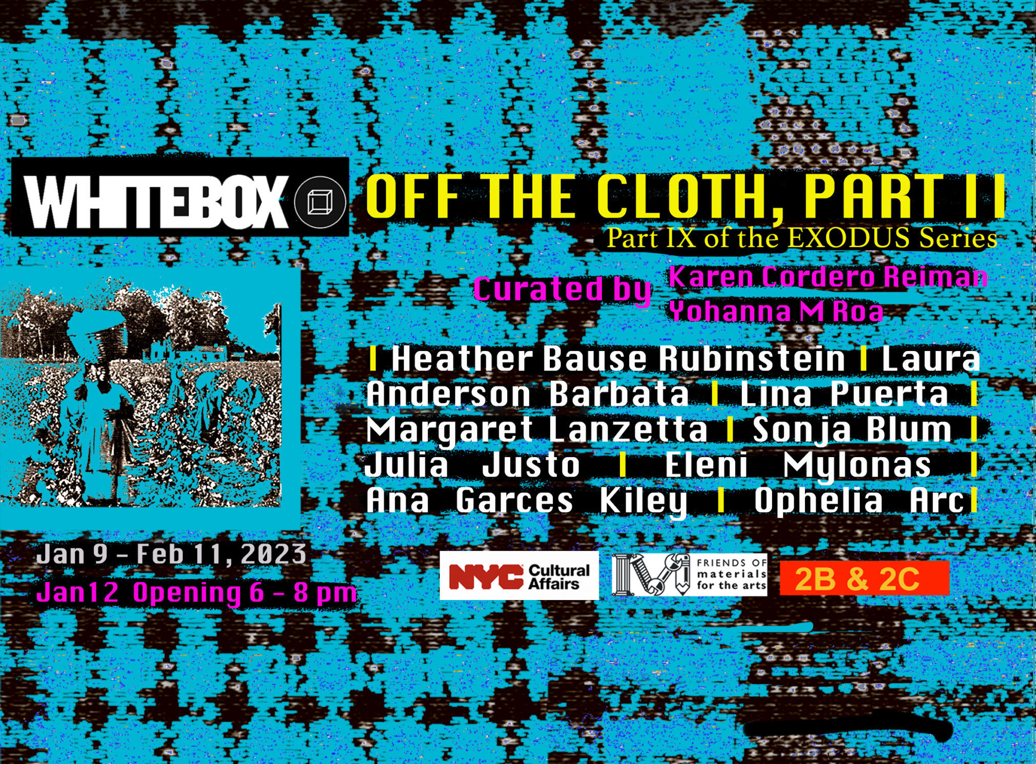 We invite the public to visit the exhibition “Off the Cloth” at WhiteBox’s new East Village venue and enjoy Earth cocktails while viewing the virtual roundtable and video performance on a widescreen. Or you can also connect and participate in the discussion via WhiteBox’s Facebook Live: https://www.facebook.com/whiteboxny